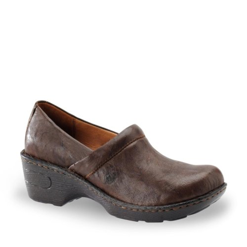The Born Women's Toby Slip-On Clog gives you great-feeling comfort in a classic clog shape. It features Opanka construction, where the upper, sockliner and outsole are handsewn together in a single process; this ensures superior cushioning and flexibility, and helps alleviate end-of-day soreness. Generous arch support encourages your foot into a natural position to ease cramping, and a lightweight polyurethane outsole absorbs shock to help relieve foot stress. The leather or nubuck upper is lined in soft, breathable leather so your feet will feel cool and dry all day long.